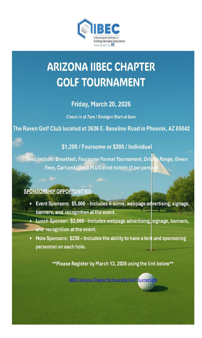 IIBEC-Arizona is a not-for-profit, professional association of building enclosure specialists and is an affiliated chapter of the International Institute of Building Enclosure Consultants (IIBEC). Our members specialize in design, investigation, repair, and management of roofing, exterior wall, and waterproofing systems. We welcome architects, engineers, building scientists and technicians, students, contractors and other professionals looking to… Continue Reading